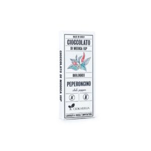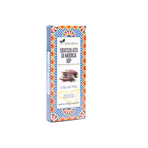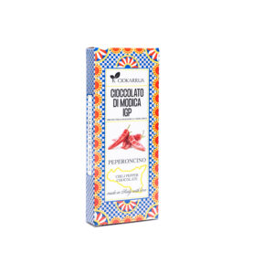 Cioccolato di Modica IGP Bio PeperoncinoIl cioccolato fondente biologico al peperoncino con una cacao minimo 60% è una prelibatezza che unisce il ricco sapore del cioccolato fondente di alta qualità con la piccantezza avvolgente del peperoncino. Realizzato con ingredienti provenienti da agricoltura biologica, questo cioccolato è privo di additivi chimici e conservanti, offrendo un’esperienza autentica e naturale.